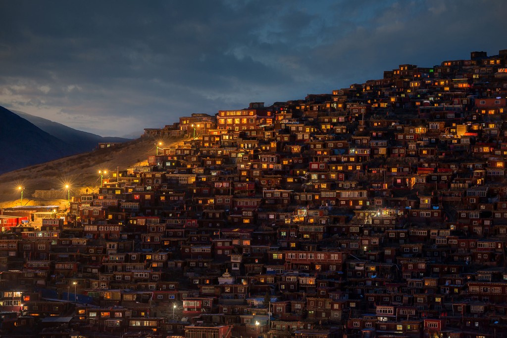 Du lịch đến Larung Gar, bạn đừng vội ngủ sớm nhé, vì khi về đêm chính là lúc Larung Gar đẹp nhất. Hàng ngàn ánh đèn lấp lánh được trải dài từ đỉnh thung lũng xuống dưới tận chân đồi, trên bầu trời với hàng triệu ngôi sao lung linh cũng như muốn đùa vui. Một cảnh đẹp mà không phải ai trong đời cũng thấy được, chỉ có đến Larung Gar, chúng ta mới như lạc vào một thế giới đầy huyền ảo như thế.