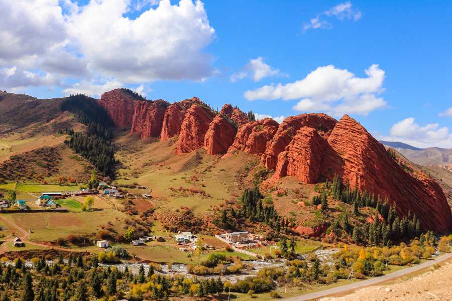 Seven Bulls Rock là cụm đá đỏ nổi tiếng gần Karakol, gắn với truyền thuyết dân gian Kyrgyzstan và thường xuất hiện trong các tour Kyrgyzstan – Kazakhstan, kết nối thung lũng Altyn Arashan.
