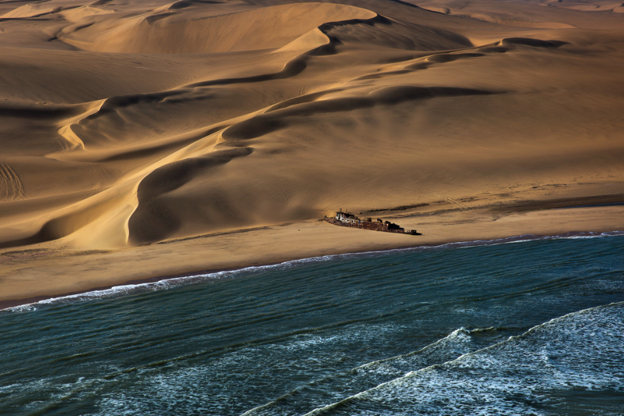 Đứng giữa Skeleton Coast, bạn sẽ thấy sự đối lập mạnh mẽ: một bên là đại dương xám lạnh, một bên là những đụn cát khô cằn của sa mạc Namib. Giữa hai thế giới ấy là những xác tàu rỉ sét, nghiêng mình trước gió.