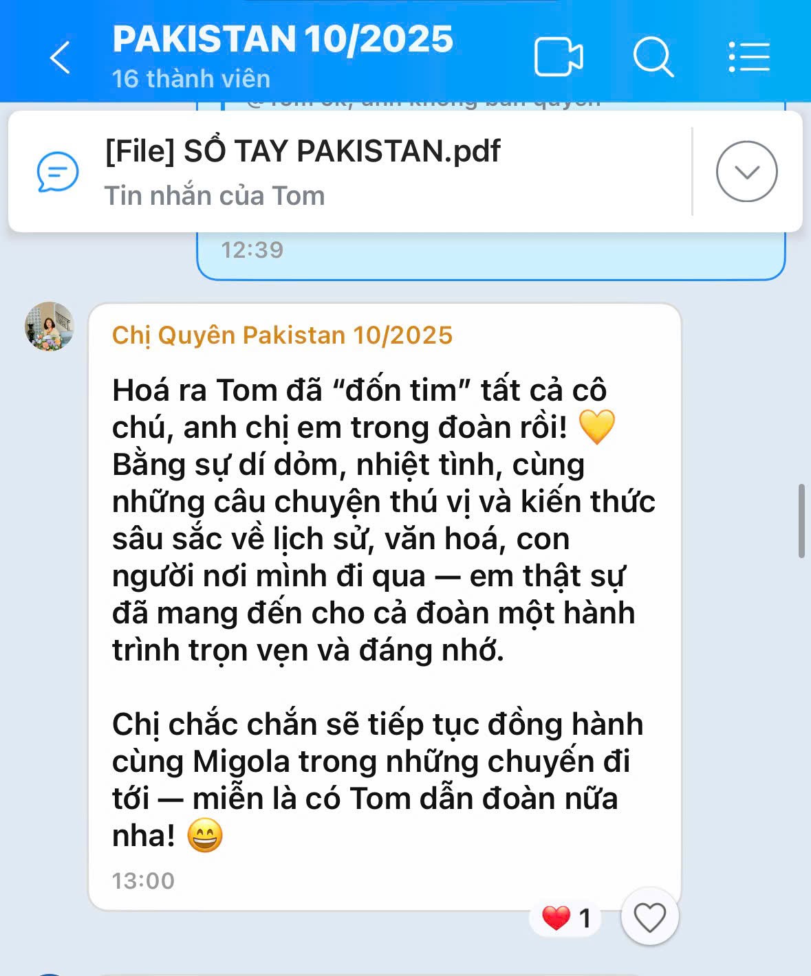 Hóa ra Tom đã "đốn tim" tất cả cô chú, anh chị em trong đoàn rồi! Bằng sự dí dỏm, nhiệt tình, cùng những câu chuyện thú vị và kiến thức sâu sắc về lịch sử, văn hóa, con người nơi mình đi qua - em thật sự đã mang đến cho cả đoàn một hành trình trọn vẹn và đáng nhớ.