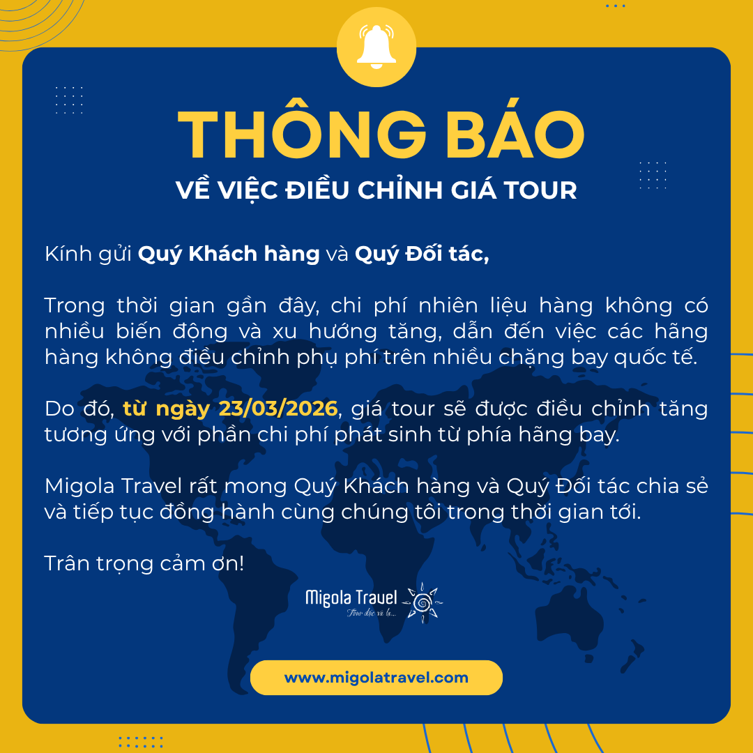 Migola Travel xin thông tin đến Quý khách: Trước những diễn biến mới tại khu vực Trung Đông, đặc biệt liên quan đến tình hình an ninh giữa Israel và Lebanon, đối tác địa phương của chúng tôi đã chính thức khuyến...