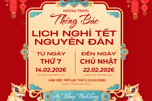 Kính gửi Quý Khách hàng và Quý Đối tác, Migola Travel xin trân trọng thông báo lịch nghỉ Tết Nguyên Đán Bính Ngọ 2026 như sau: Thời gian nghỉ Tết Từ thứ Bảy, ngày 14/02/2026 Đến hết Chủ nhật, ngày 22/02/2026 Thời gian làm việc trở lại Thứ Hai, ngày 23/02/2026 (tức mùng 7 Tết), bắt đầu...