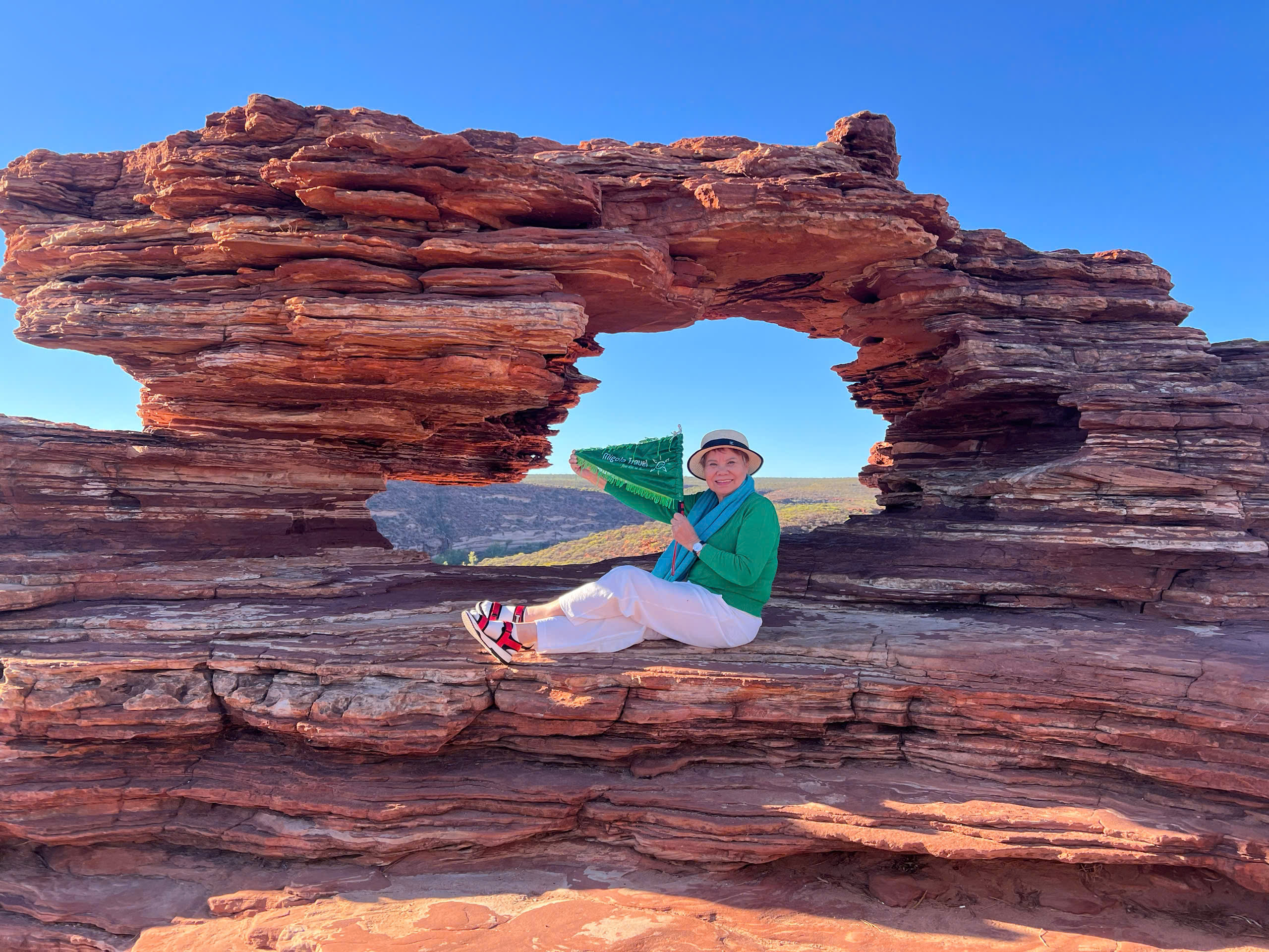 - Nature's Window: Hay còn được gọi là Cổng trời Kalbarri, là một khối đá sa thạch bị phong hóa theo thời gian, tạo thành một tác phẩm tựa như chiếc cửa sổ nhìn ra được cả một vùng trời thiên nhiên rộng lớn.