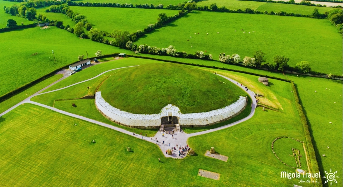 Băng qua biên giới, sau đó xe đưa quý khách về thủ đô Dublin của Cộng hòa Ireland. Trên đường đi, quý khách dừng chân tham quan Di chỉ khảo cổ Newgrange được UNESCO công nhận là Di sản thế giới vào năm 1993. Đồi nghĩa trang Newgrange là một trong những đài tưởng niệm thời tiền sử ấn tượng nhất ở Châu Âu, có thể sánh ngang hàng với Stonehenge và đền Ggantija. Nơi đây từng là nơi chôn cất của các vì vua dòng Tara và đã được xây dựng từ rất lâu khoảng 3200 trước công nguyên. Những nhà khảo cổ hiện đại cho rằng chắc hẳn nó được sử dụng như đài quan sát mặt trời, nếu vậy nó sẽ là đài quan sát thiên văn xưa nhất thế giới.