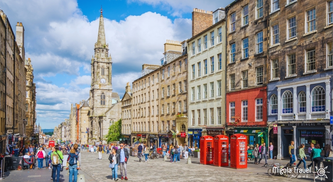 Quý khách tự do dạo quanh khu phố cổ và con đường Royal Mile. Con đường đá cuội này được xem là khu vực phố cổ của Edinburgh. Kéo dài từ cung điện Holyroodhouse đến lâu đài Edinburgh, Royal Mile như tái hiện lại một xã hội thu nhỏ từ thời trung cổ với các hàng quán, nhà thờ nhỏ nằm hai bên đường.