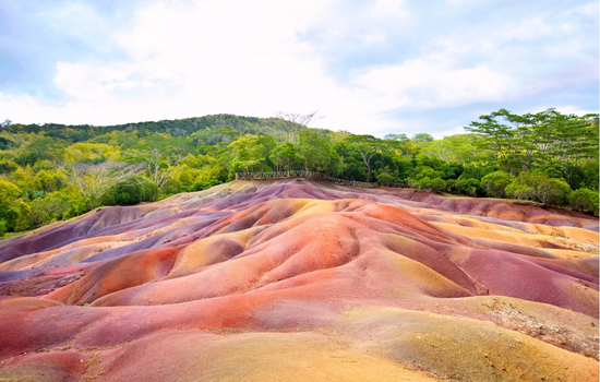Sau đó, xe đưa đoàn đến làng Chamarel thuộc tỉnh Rivière Noire, tham quan Black River Gorges National Park – công viên quốc gia là nơi cư trú của nhiều loài động vật quý hiếm có nguy cơ tuyệt chủng, trong đó có loài bồ câu hồng đặc sắc. Đòan chiêm ngưỡng hiện tượng địa chất “đồi đất bảy màu” – những gợn đồi với sắc độ đất khác nhau xếp lớp, cùng với thác Chamarel tạo thành bộ đôi điểm đến nổi tiếng của Mauritius.