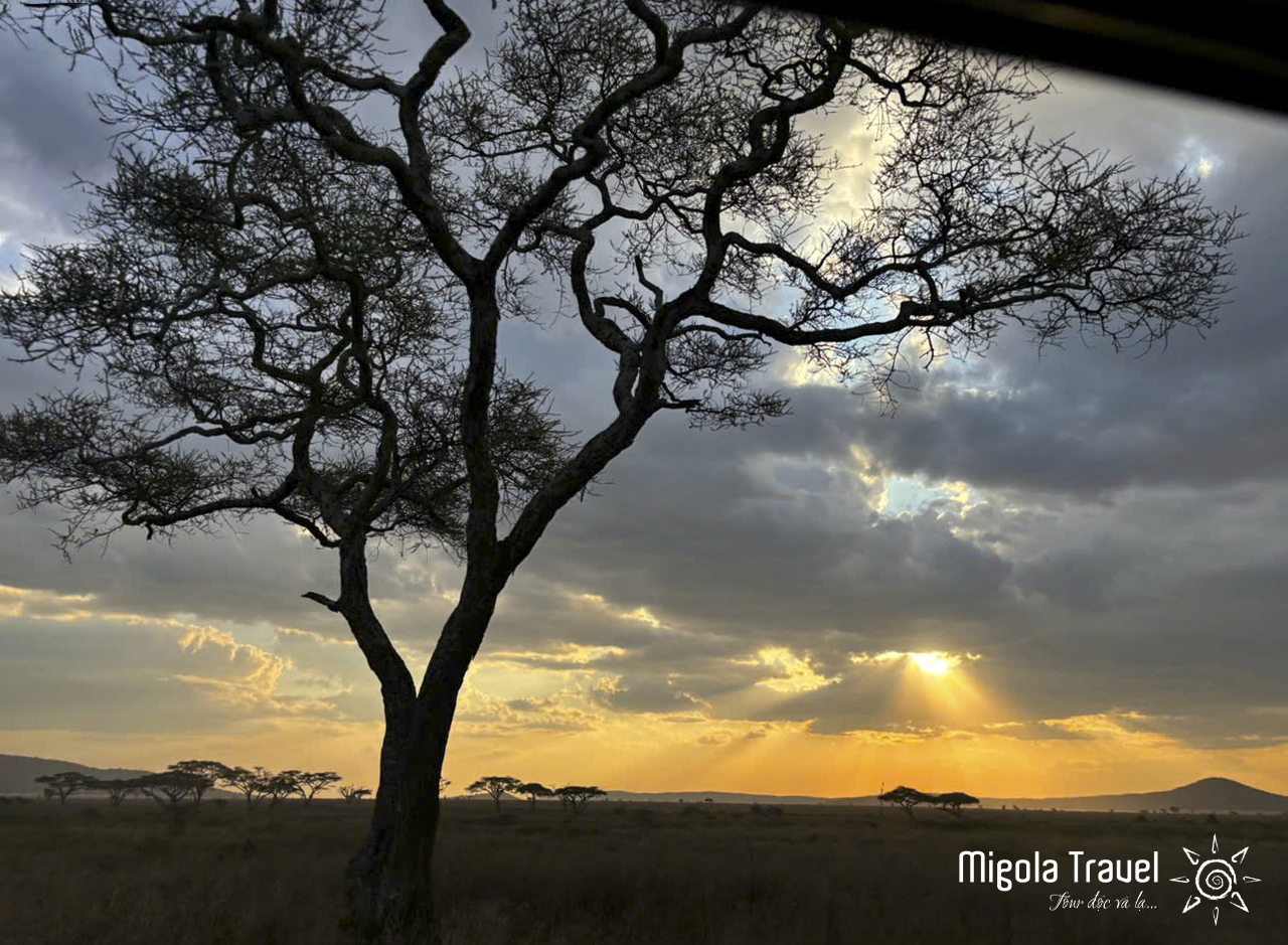 Quý khách dùng bữa sáng, sau đó đoàn chia tay Ngorongoro, di chuyển đến vùng đồng bằng Serengeti – “Đồng bằng bất tận”. Serengeti, thiên đường hoang dã tại Tanzania, là mái nhà rộng lớn cho hàng ngàn loài động vật hoang dã. Nổi tiếng với “The Great Migration” – Cuộc di cư vĩ đại của đàn linh dương, tới đây, quý vị không chỉ có cơ hội gặp gỡ với những loài vật chỉ thấy trên TV mà còn có được hoà mình giữa vẻ đẹp thiên nhiên vô song của vùng đất huyền bí này.