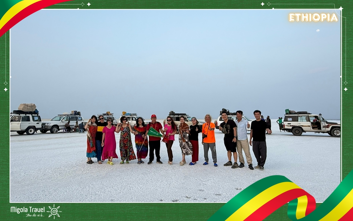 Vào sáng sớm, quý khách dành thời gian tiếp tục đến với vùng sa mạc Danakil để khám phá vùng đất đặc biệt nhất trên Trái đất. Lòng chảo Danakil với nhiệt độ trung bình năm quanh mức 350C, có thời điểm trong mùa hè lên hơn 600C khiên nơi này được đánh giá là nơi nóng nhất trên hành tinh. Hoạt động kiến tạo địa chất nơi đây cũng diễn ra mạnh mẽ trong quá khứ, Danakil nằm giữa ba mảng kiến tạo ở vùng Sừng châu Phi.