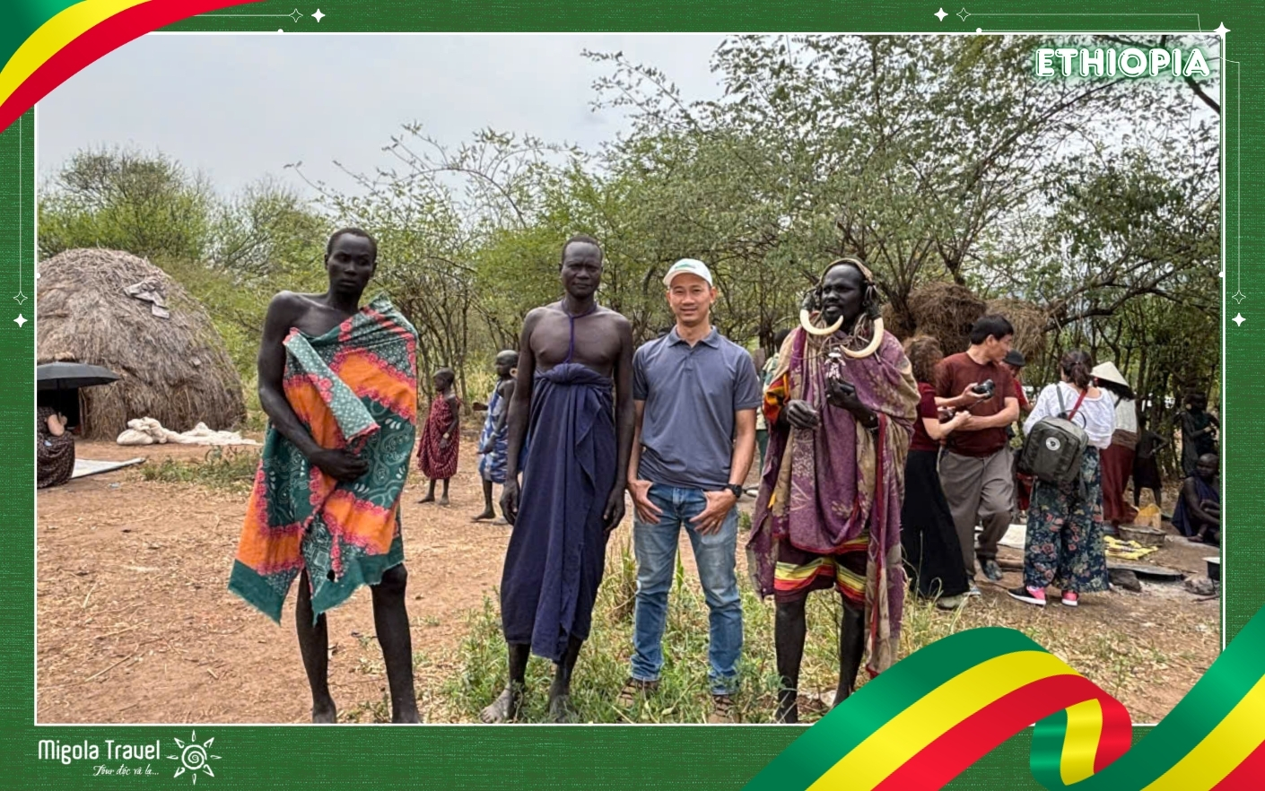 - Quý khách giao lưu cùng bộ lạc Mursi. Những bé gái người Mursi khi bước sang tuổi 13 sẽ được người trong bộ lạc thực hiện nghi lễ trưởng thành. Trong nghi lễ, bé gái phải nhổ đi hai chiếc răng cửa, khoét một lỗ ở môi dưới và bắt đầu đeo những chiếc đĩa trang sức vào môi. Chiếc đĩa môi được tăng đần cho đến lúc không thể nông rộng được nữa. Bộ lạc Mursi thường di cư hai lần một năm vào những tháng mùa hè và mùa đông do khí hậu thay đổi. Nông nghiệp chính là nguồn kinh tế chính, họ chăn thả gia súc và trồng trọt dọc theo sông Omo.