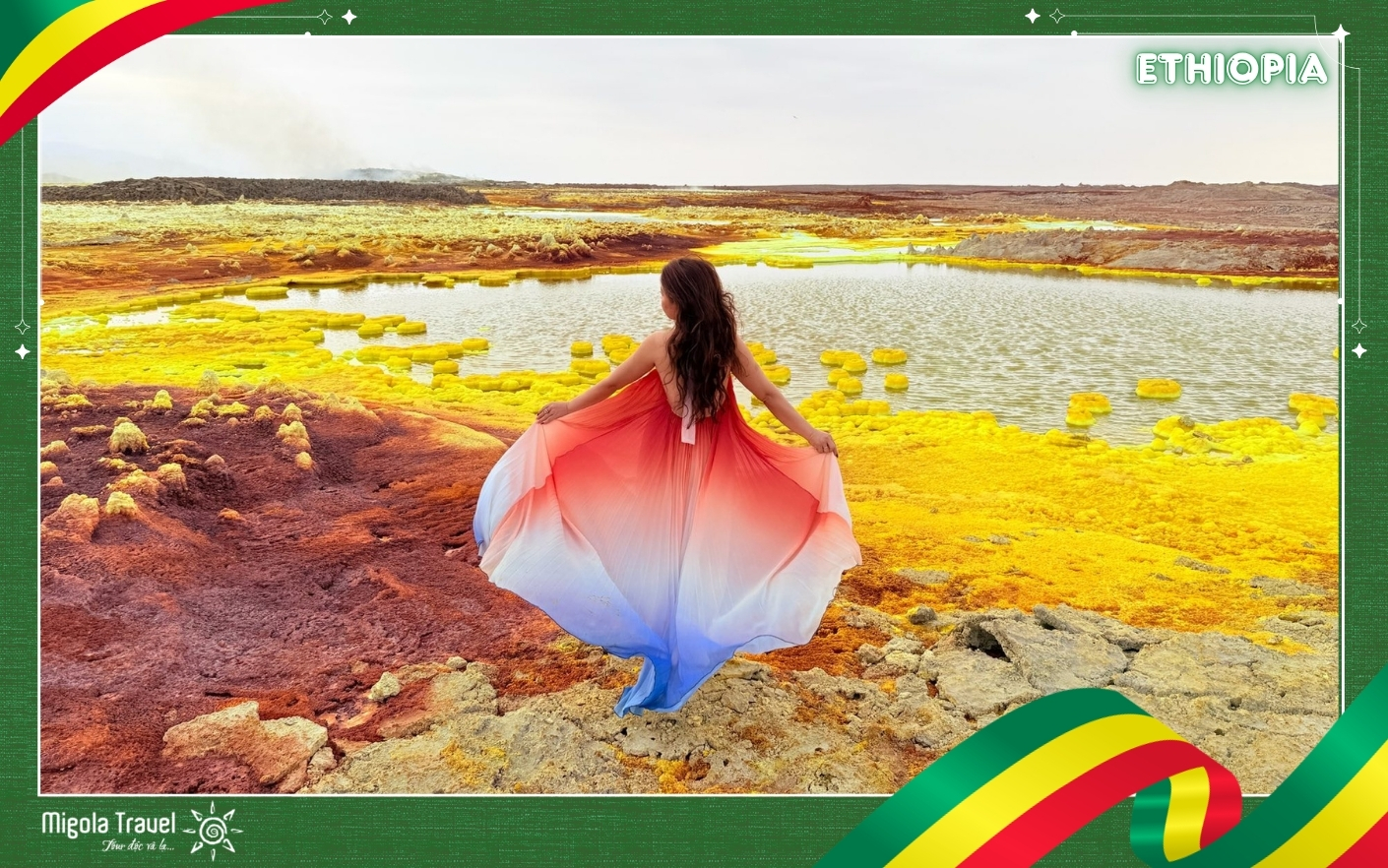 Hành trình của Tour Ethiopia không dừng lại ở đó – bạn sẽ ngược dòng về hồ Tana, thượng nguồn của sông Nile Xanh, chiêm ngưỡng thác Blue Nile hùng vĩ tuôn chảy giữa cao nguyên, rồi tiến đến lòng chảo Danakil – một trong những nơi thấp và nóng nhất hành tinh, nơi mặt đất rực sắc vàng cam, tím đỏ, xanh lưu huỳnh như bức tranh siêu thực.