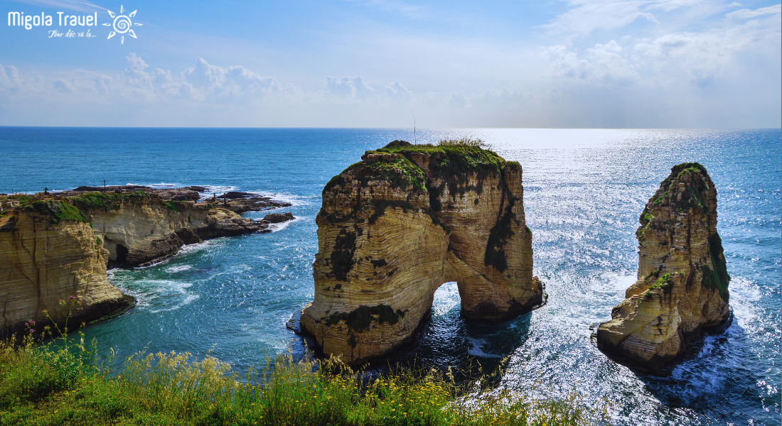 Đoàn dành thời gian đi bộ dọc theo con đường Corniche rợp bóng cây cọ và nhìn ra Pigeon Rocks nổi tiếng - hai khối đá vôi tự nhiên đứng giữa biển, được xem như biểu tượng địa chất của Beirut.