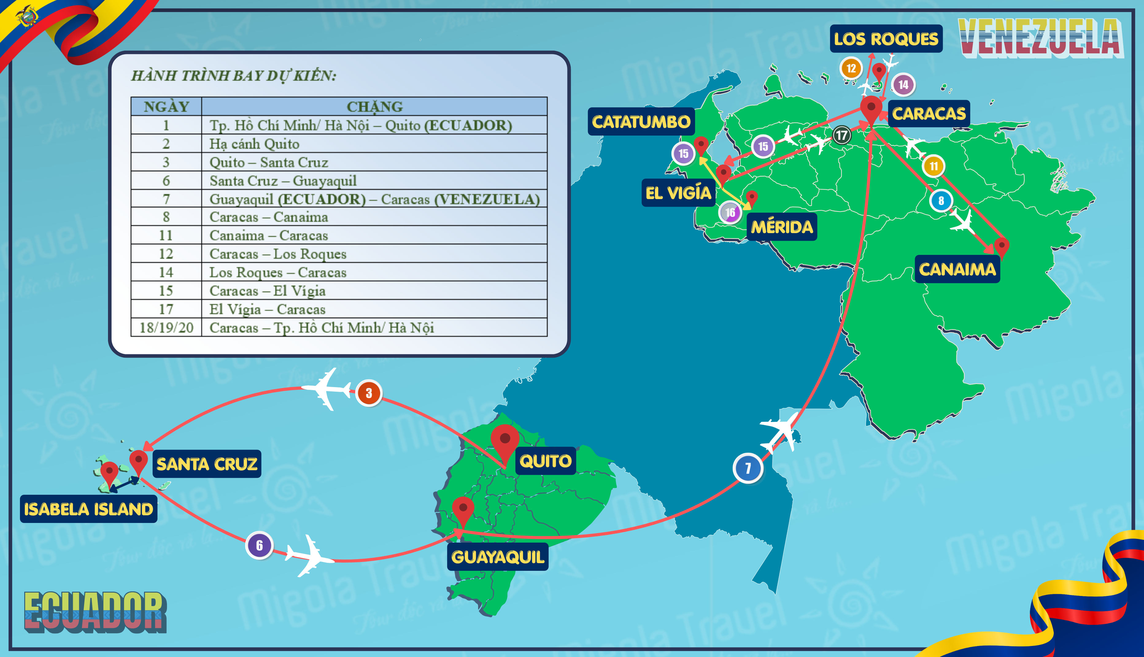 Đây không phải là một chuyến du lịch thông thường. Đây là hành trình đi qua những cảnh quan ngoạn mục nhất Nam Mỹ, nơi thiên nhiên vẫn còn hoang sơ và hùng vĩ. Hãy cũng Migola khám phá Ecuador và Venezuela trên cung đường đầy màu sắc và thú vị này bạn nhé!