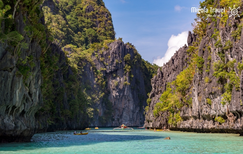 - Big Lagoon: cũng là một đặc trưng tươi đẹp của thiên nhiên El Nido, Big Lagoon vẫn có những bãi cát trắng mịn, một dòng nước trong vắt như những viên pha lê được thả xuống biển.